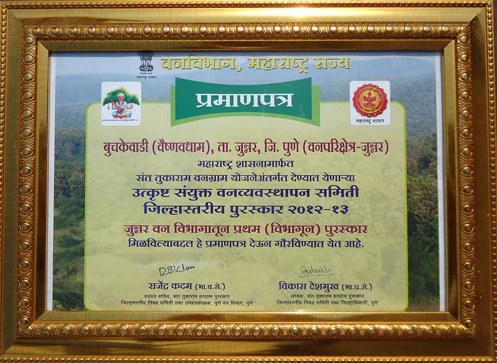 - State level award of "Sant Van Gram Puraskar" awarded by Forest department for the year 2012-13 and 2014-15.
