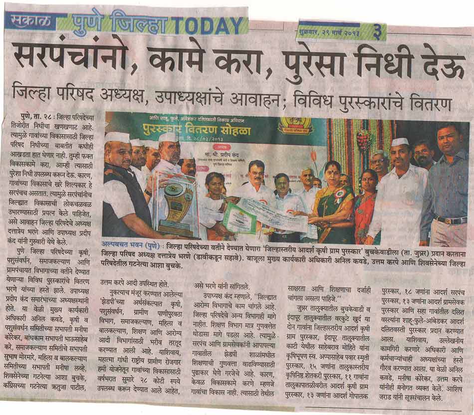 When the guests arrived in Vaishnavdham on Sunday morning at around 11.30 am, they were felicitated by the villagers in the traditional way before carrying out a grand procession with the guests riding in a bullock-cart. After the procession, the villagers gathered in the main temple and provided the guests detailed information about the activities undertaken through the Watershed Development Project. Acknowledging the efforts by the Self Help Groups (SHGs), Mahila Bachat Gat as exemplary, the guests promised to extend more help for such activities in the future. Deputy Sarpanch or Upasarpanch Mr. Suresh Gaikwad played the role of the main anchor in the program, and Mrs. Varsha Dere delivered a vote of heart-felt thanks to the guests during the occasion.