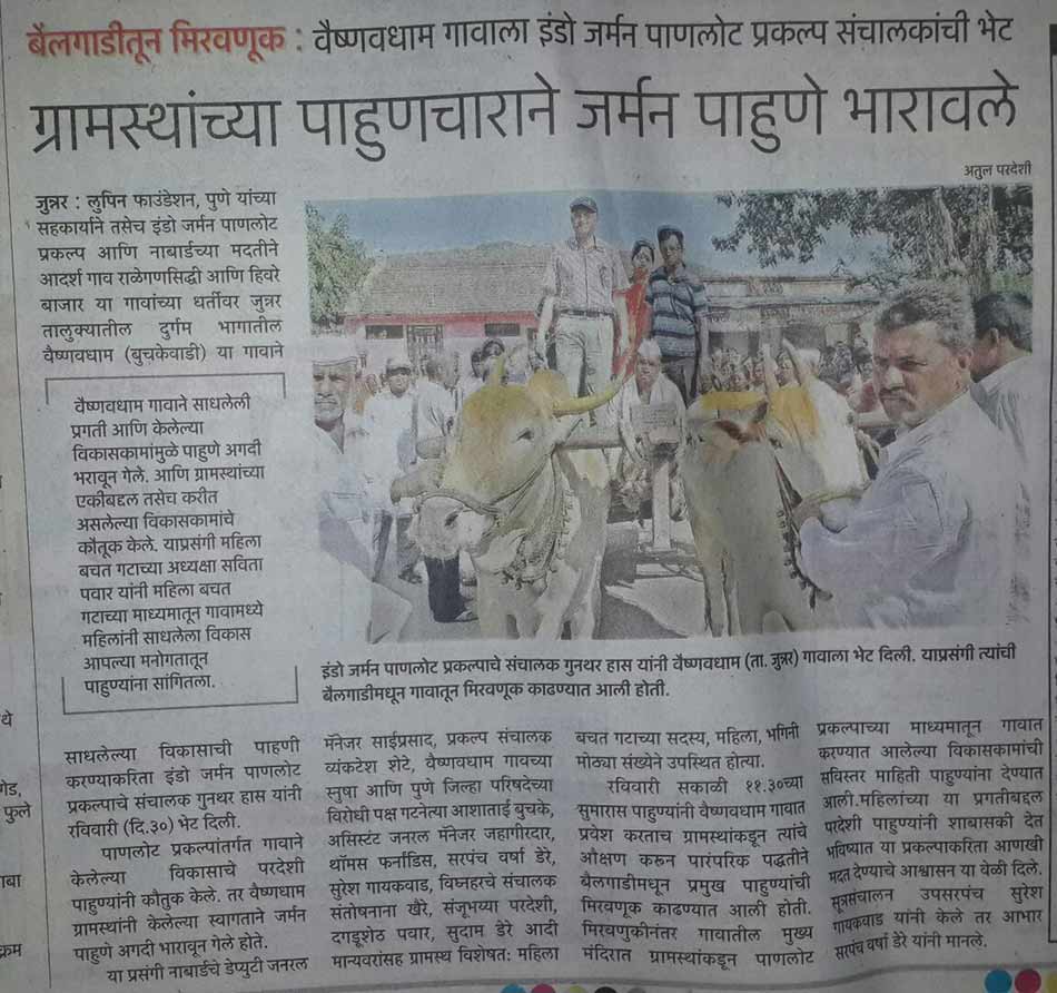 Junnar: Co-operation of Lupin Foundation, Pune along with the help from Indo-German Watershed or the Panlot Project and NABARD, and in consideration of model village Ralegan Siddhi and Hiware Bazar, the Project Director of the Indo-German Watershed Project Mr. Gunthar Haas, visited the village to observe the progress achieved by the villagers in the impassable region of Junnar Tehsil or taluka, Vaishnavdham (Buchakewadi) on Sunday the 30th.