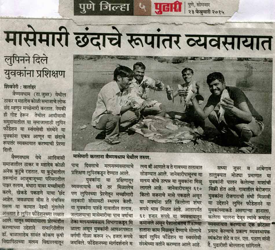 At present, fish maintained by the youth are sold in large proportions in the surrounding areas of Junnar and Ambegaon. While talking to Pudhari, Project Manager Mr. Venkatesh Shete said, “The jobless youth were employed by harnessing the know-how and art of fishing as an effective employment channel. This was possible through the efforts and initiative of the Lupin Foundation and is definitely an achievement in itself.”